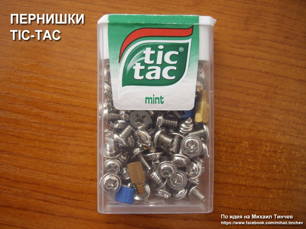 Пернишки Tic Tac 04.03.2012 Това е кутийка, която ми помага при ремонта на компютри понякога, но явно синът ми е видял друго в нея… 😀